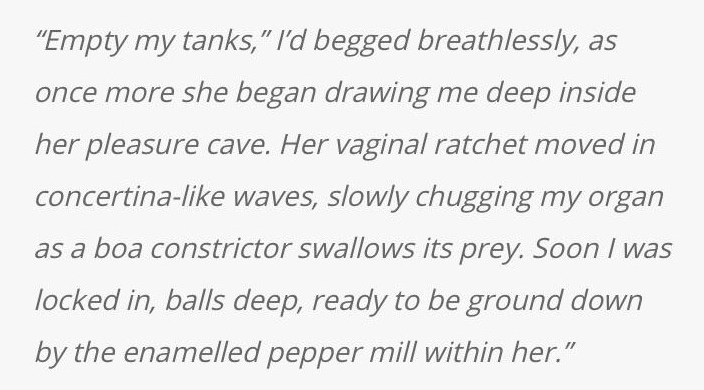 And if you don’t trust me, check out this review of a major published novel that won the “worse sex in a book” award.