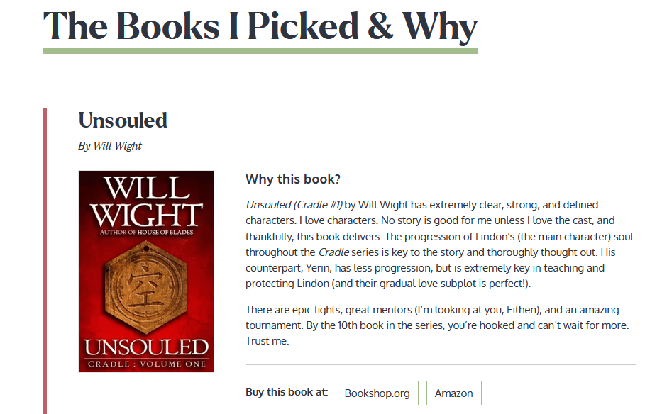 It’s me, Shami. I was contacted by a website to make a list of my favorite books (I got to pick the genre) and I decided to go with Progression Fantasy! Those are typically novels where the magic/chi/chakara (whatever) is increased in definable steps (like the arcanists in my Frith Chronicles series).