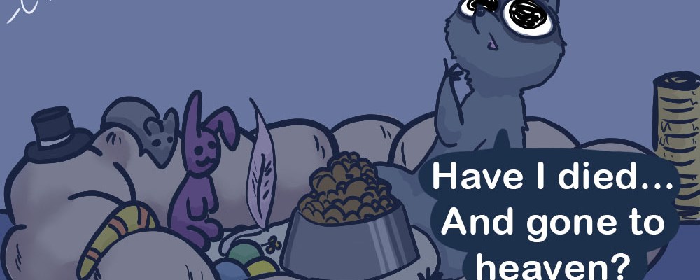 Currently, I draw comics about being an author, and occasionally about a silly raccoon who pretends to be a cat in order to get food and board, lol. The elderly lady has bad eyesight and thinks the raccoon is her cat, Kiki (when it’s obvious to everyone else he isn’t).